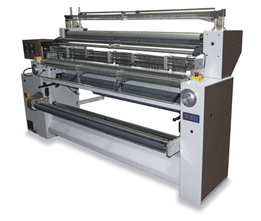 Máquina de crochet para la fabricación de malla de paletizar y malla para la envoltura de pasto. Con alimentación directa a partir de film de polietileno de alta densidad.