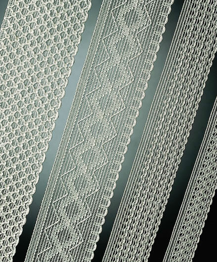 Máquina de crochet de alta velocidad y de empleo versátil, especializada para la producción de cintas elásticas y rígidas, para posterior utilización en la industria de confección y de ropa interior.