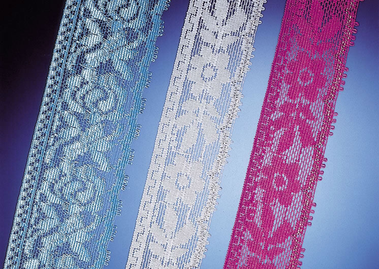 Máquina de crochet electrónica de alto rendimiento y de empleo versátil para la producción de cintas y encajes, elásticos o rígidos, de alta calidad y fantasía.