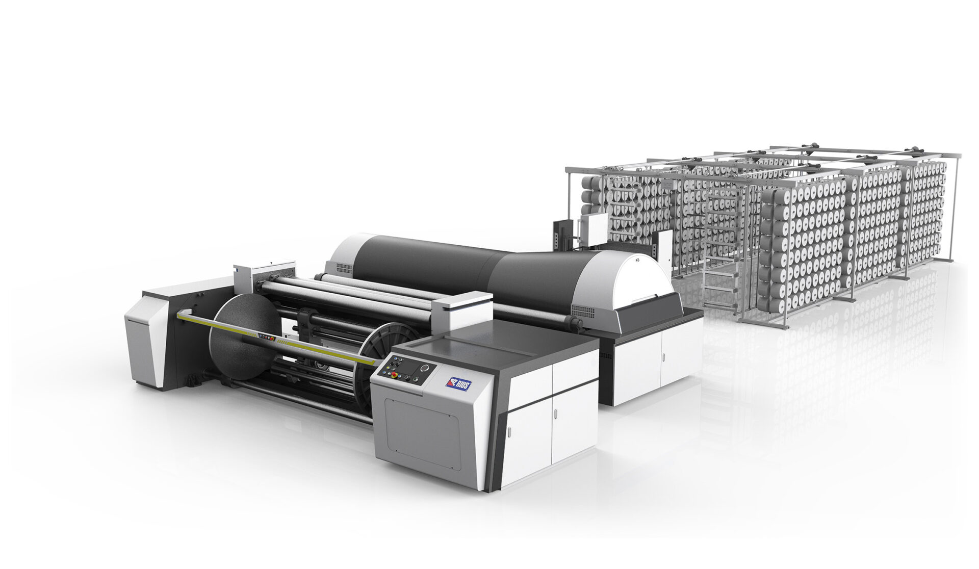La mesa de urdido viene equipada con un rodillo de presión para dar una tensión constante y presión a los hilos en la sección de urdido. Este rodillo es accionado neumáticamente y controlado automáticamente. La presión se ajusta en la pantalla táctil y en constante control a través de PLC.