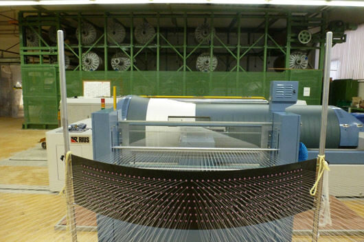 El urdidor está equipado con 4 ruedas que se deslizan sobre raíles. Dos de ellas son libres y las otras dos tienen movimiento positivo a través de un motor reductor.