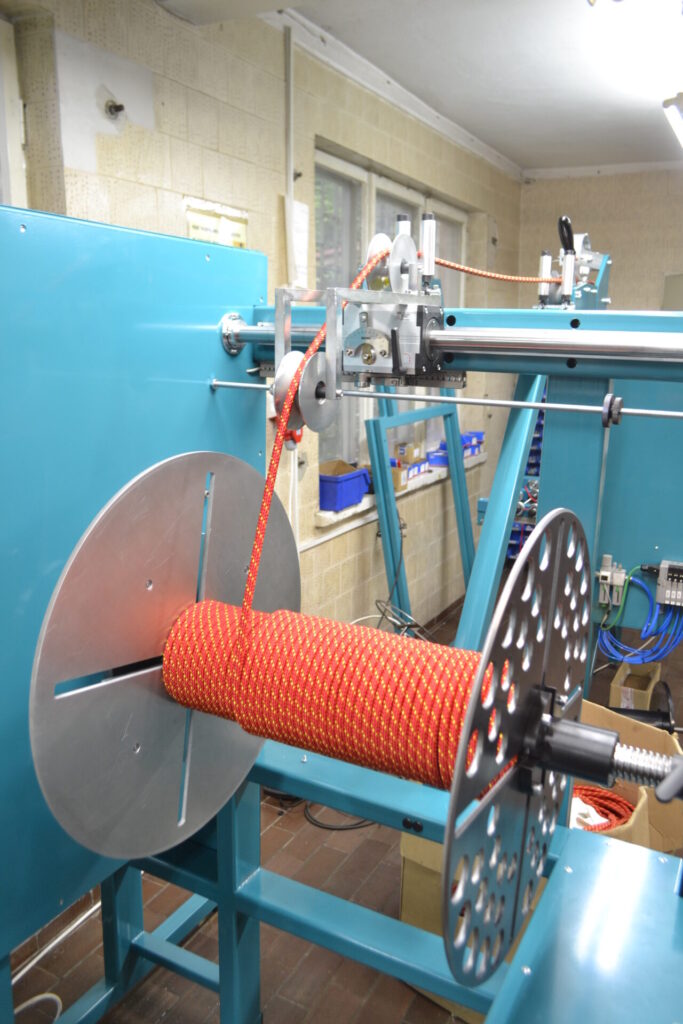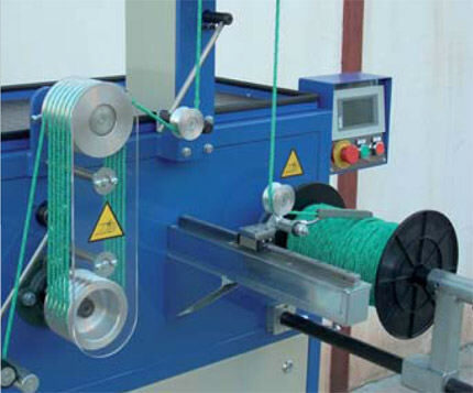 Máquina semiautomática de gran precisión para encarretar y medir todo tipo de cuerdas y cordones rígidos de grandes diámetros, así como cintas especiales.