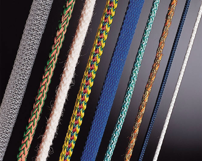 Máquina trenzadora de punto de alta velocidad y de empleo versátil para la producción de cuerdas, cordones elásticos o rígidos, cordones para zapatos, revestimentos, adornos, aplicaciones deportivas etc.