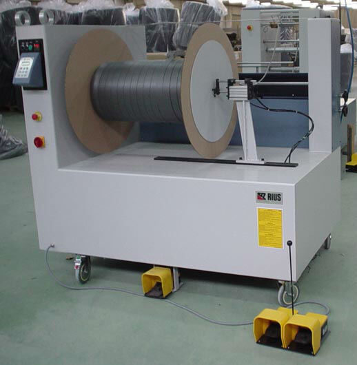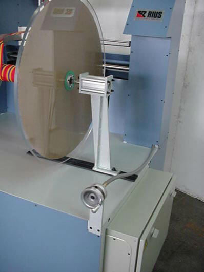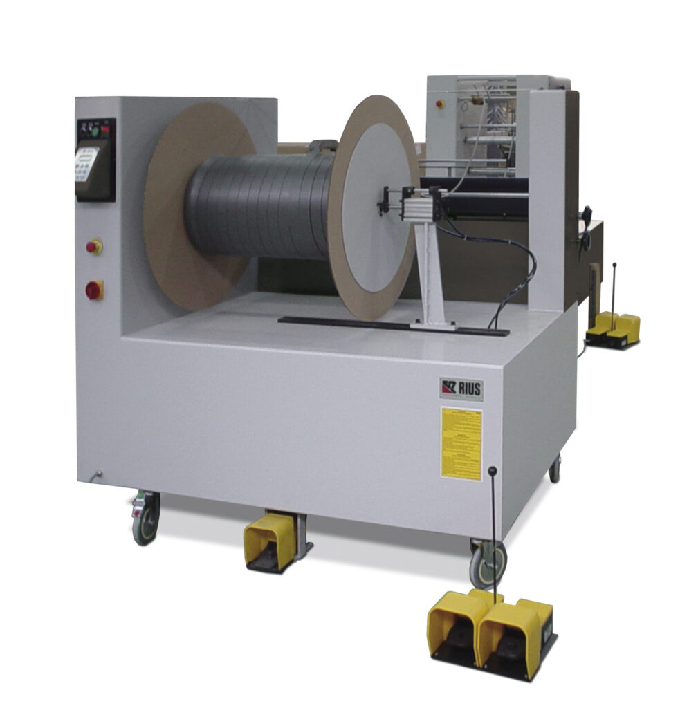 Máquina encarretadora y medidora, para cintas especiales (espumas técnicas y otras) y cordones.