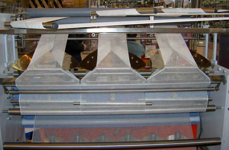 Máquina cortadora y dobladora completamente autom´tica para la fabricación de compresas de formatos (tamaños) grandes.