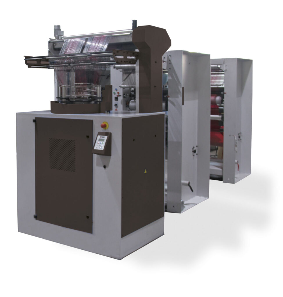 Máquina circular, para la producción de malla tubular para el embalaje de frutas y vegetales, con alimentación directa a partir de film de polietileno de alta densidad.